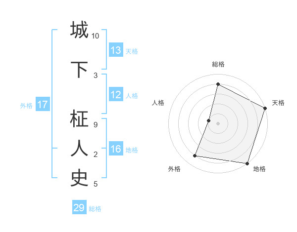 城下 柾人史さんを姓名の画数から五運を鑑定