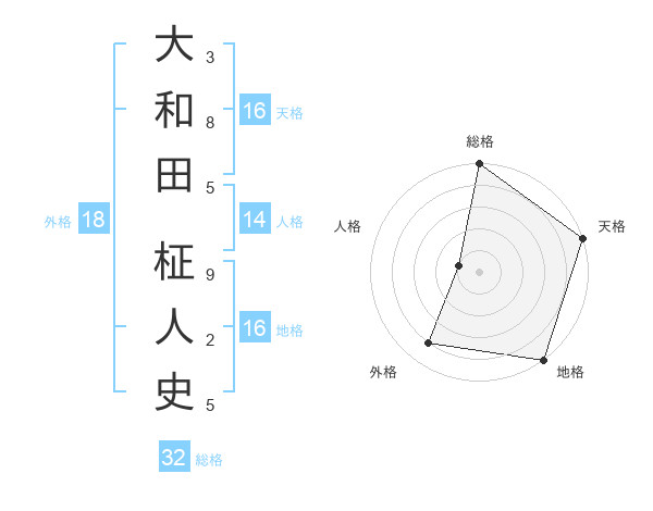 大和田 柾人史さんを姓名の画数から五運を鑑定