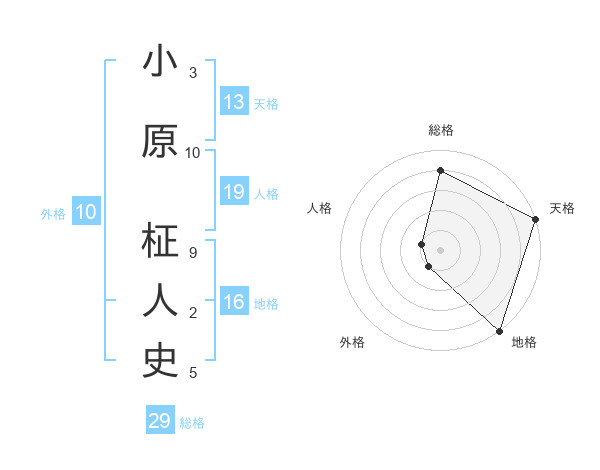 小原 柾人史さんを姓名の画数から五運を鑑定