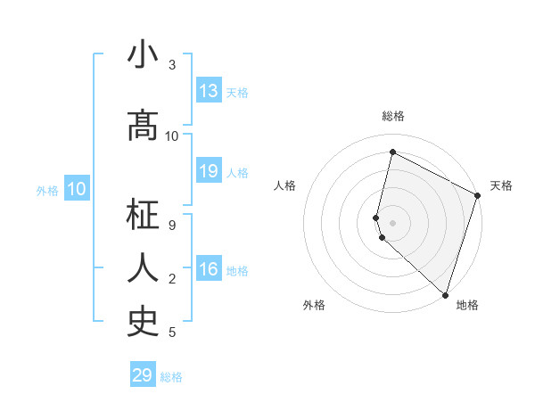 小髙 柾人史さんの総格は29画の4点!
