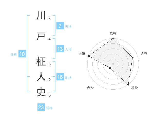 川戸 柾人史さんの総格は23画の5点!
