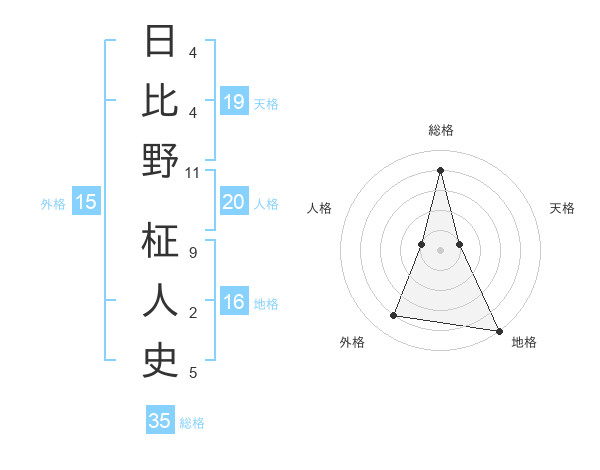 日比野 柾人史さんの天格は19画の1点!