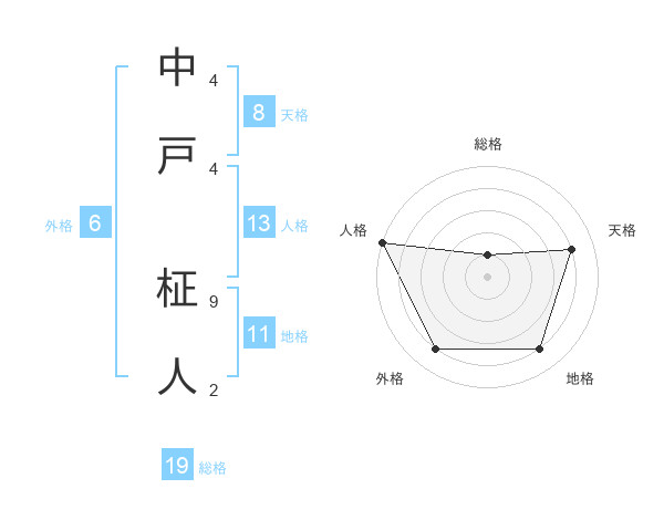 中戸 柾人さんの天格は8画の4点!