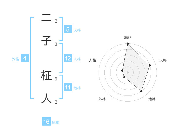 二子 柾人さんの総格は16画の5点!