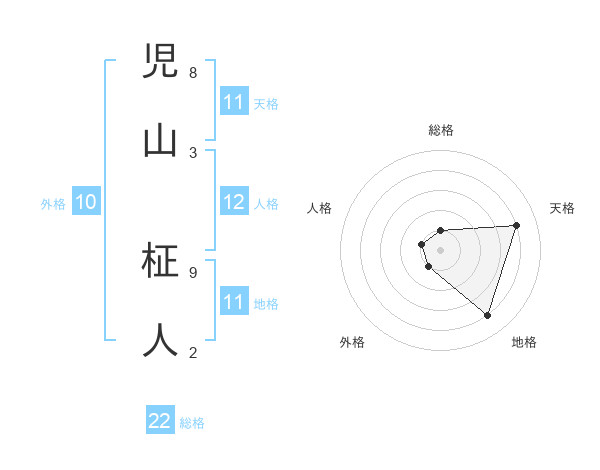 児山 柾人さんの総格は22画の1点!