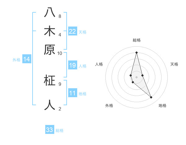 八木原 柾人さんの総格は33画の4点!