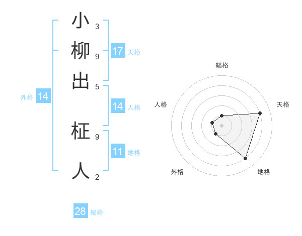 小柳出 柾人さんの総格は28画の1点!