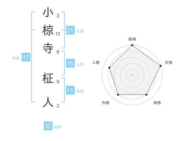 小椋寺 柾人さんを姓名の画数から五運を鑑定