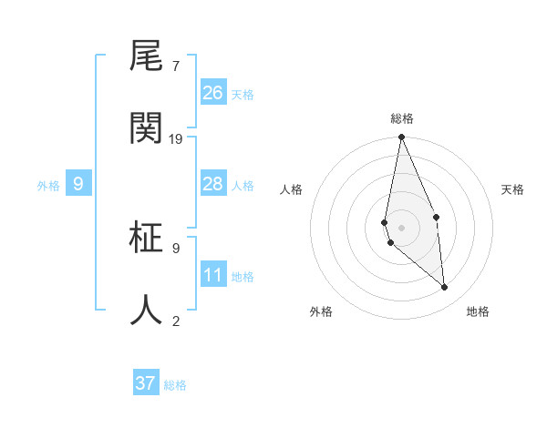 尾関 柾人さんの総格は37画の5点!