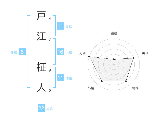戸江 柾人さんの総格は22画の1点!