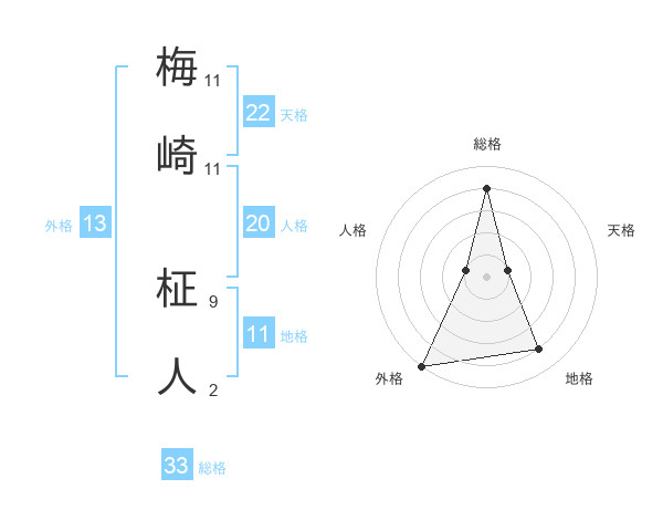 梅崎 柾人さんの総格は33画の4点!