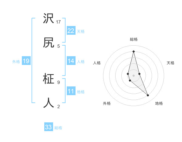 沢尻 柾人さんの天格は22画の1点!