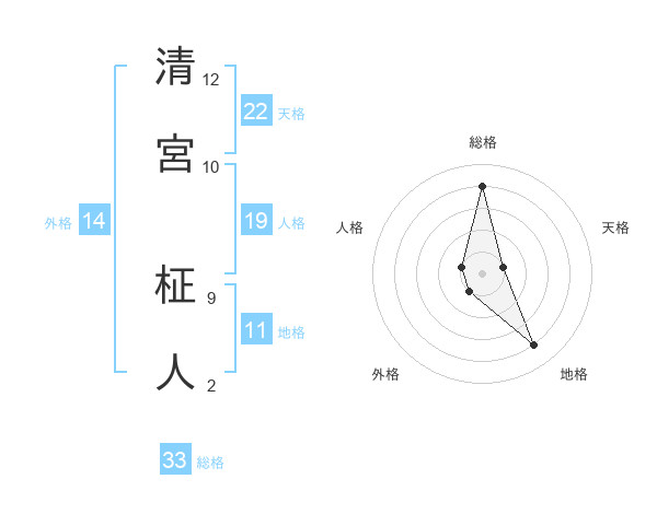 清宮 柾人さんの総格は33画の4点!