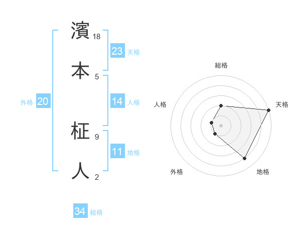 濱本 柾人さんの総格は34画の2点!