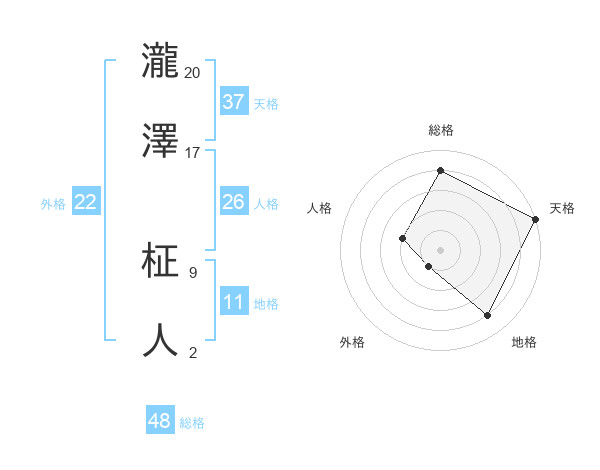 瀧澤 柾人さんの天格は37画の5点!