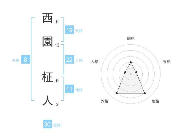 西園 柾人さんの総格は30画の2点!