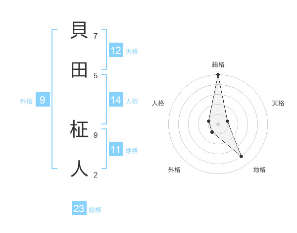 貝田 柾人さんの総格は23画の5点!