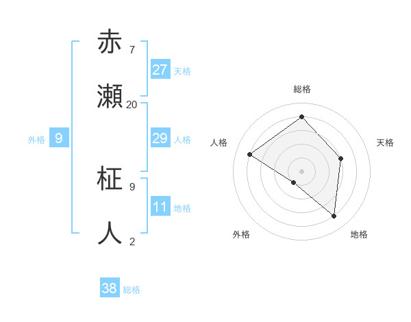 赤瀬 柾人さんの総格は38画の4点!