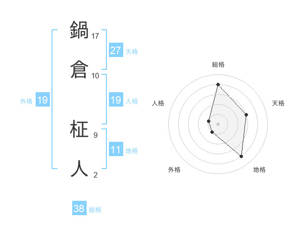 鍋倉 柾人さんの総格は38画の4点!