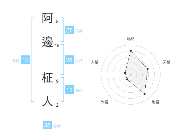阿邊 柾人さんの総格は38画の4点!