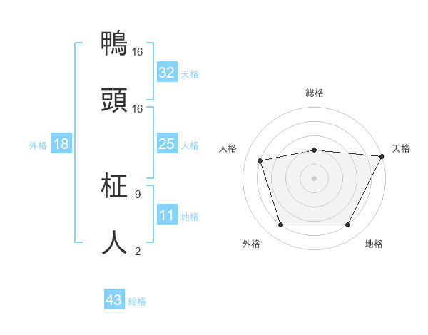 鴨頭 柾人さんの天格は32画の5点!