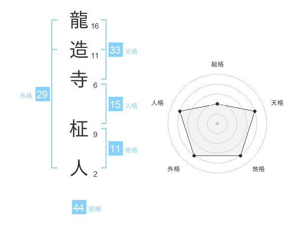 龍造寺 柾人さんの総格は44画の2点!