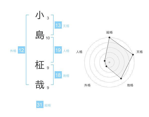 小島 柾哉さんの総格は31画の5点!