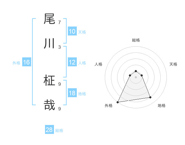 尾川 柾哉さんの総格は28画の1点!