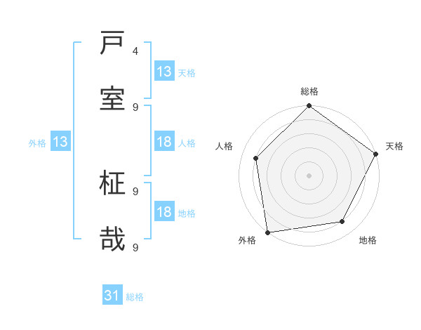 戸室 柾哉さんの総格は31画の5点!