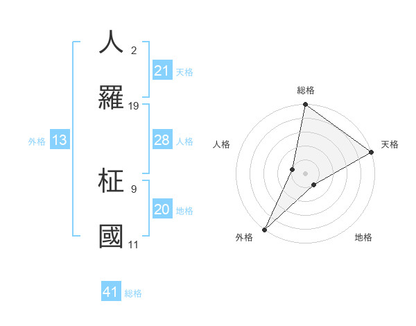 人羅 柾國さんの外格は13画の5点!