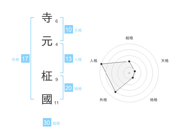 寺元 柾國さんの総格は30画の2点!