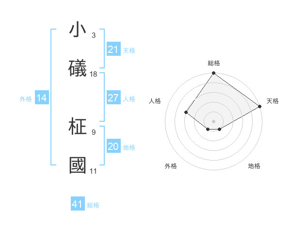 小礒 柾國さんの天格は21画の5点!