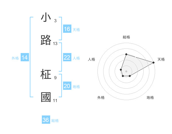 小路 柾國さんの天格は16画の5点!