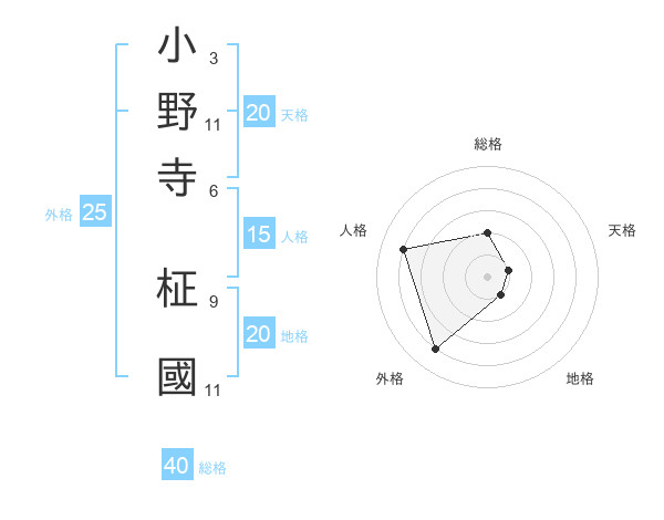 小野寺 柾國さんの天格は20画の1点!