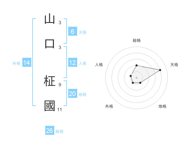 山口 柾國さんの総格は26画の2点!