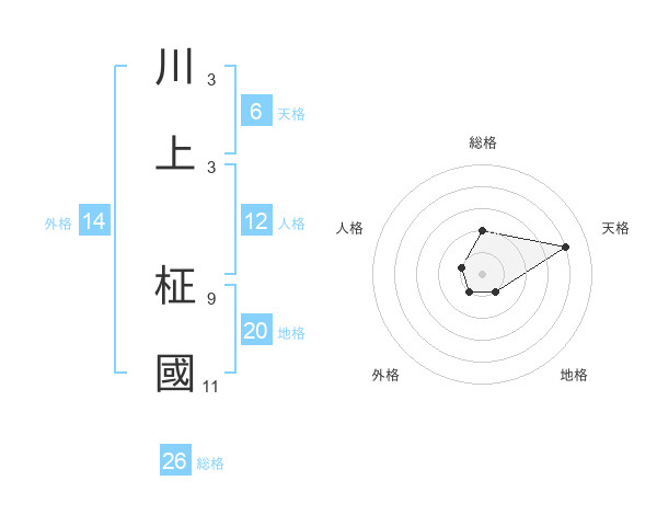 川上 柾國さんの総格は26画の2点!