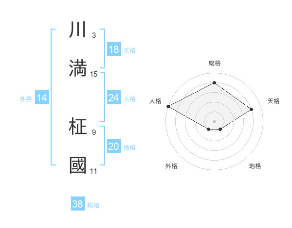 川満 柾國さんの総格は38画の4点!
