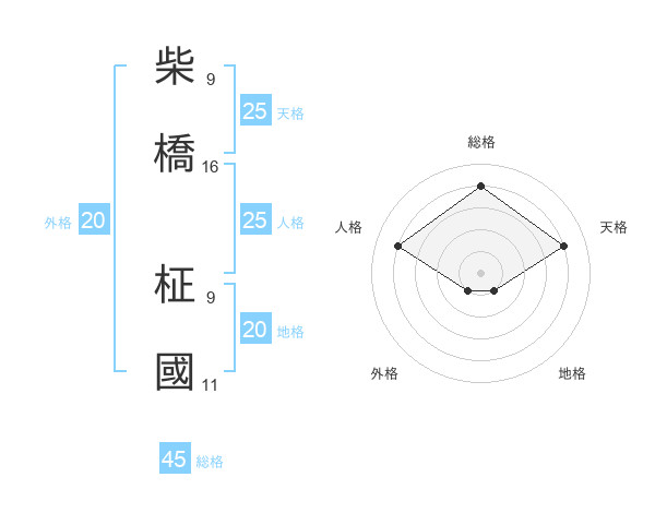 柴橋 柾國さんを姓名の画数から五運を鑑定