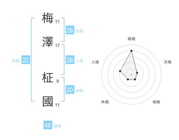 梅澤 柾國さんの外格は22画の1点!