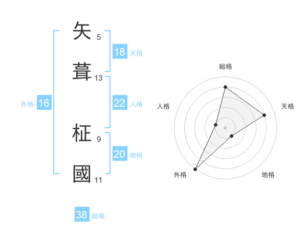 矢葺 柾國さんの総格は38画の4点!