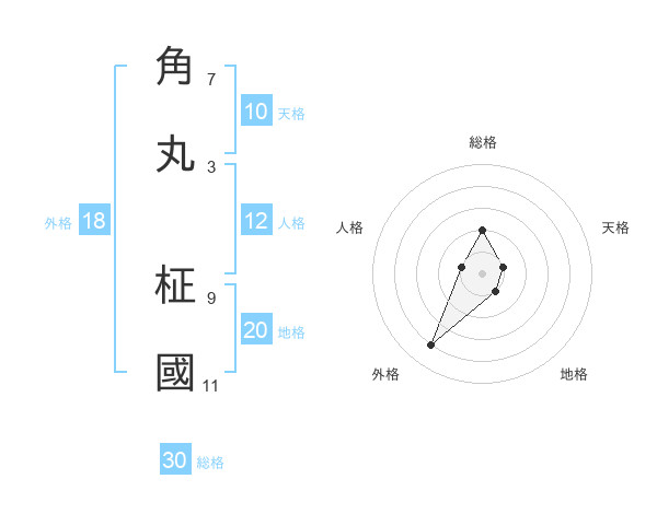 角丸 柾國さんの地格は20画の1点!