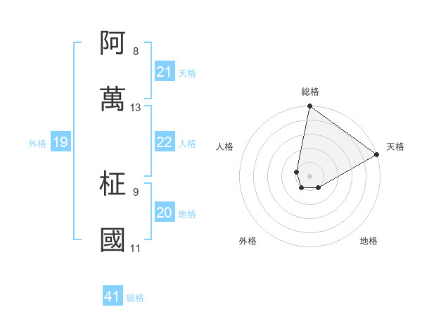 阿萬 柾國さんを姓名の画数から五運を鑑定