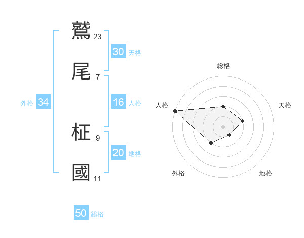 鷲尾 柾國さんを姓名の画数から五運を鑑定