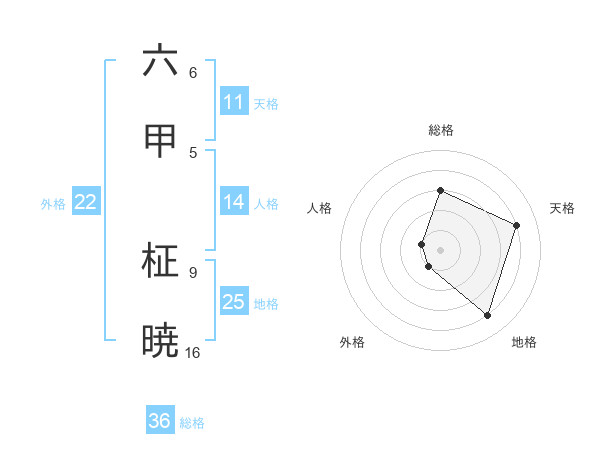 六甲 柾暁さんを姓名の画数から五運を鑑定