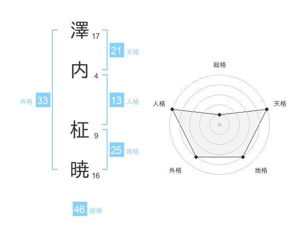 澤内 柾暁さんの天格は21画の5点!