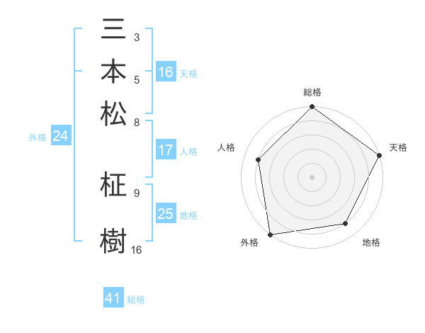三本松 柾樹さんの外格は24画の5点!