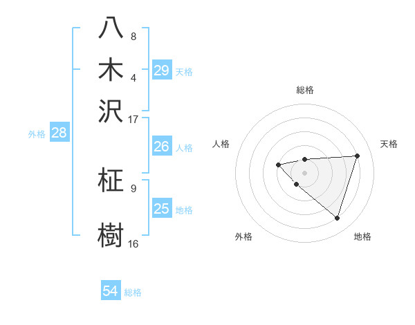 八木沢 柾樹さんを姓名の画数から五運を鑑定