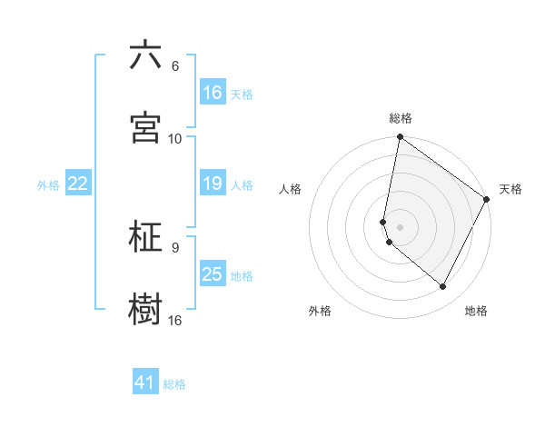 六宮 柾樹さんの外格は22画の1点!