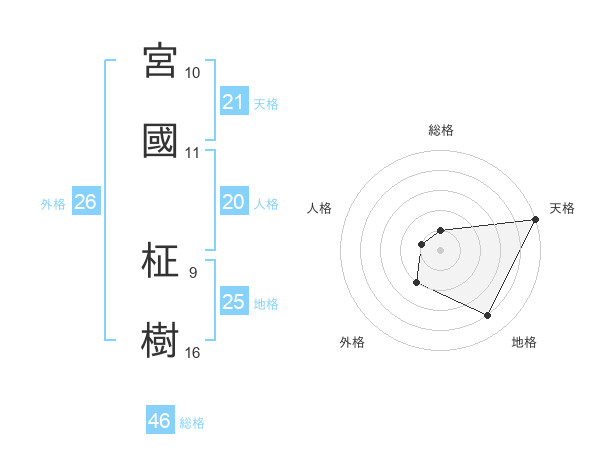 宮國 柾樹さんの外格は26画の2点!