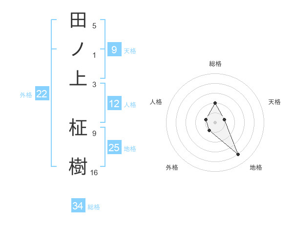 田ノ上 柾樹さんの総格は34画の2点!